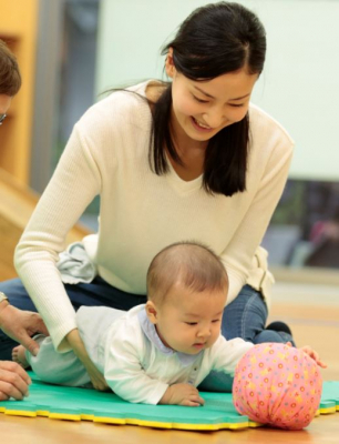 くぼたのうけんのカリキュラムでは、脳に与えられた膨大な情報をまとめて、どう処理すべきかを瞬時に決めていく重要な部分、前頭前野を様々な方法で刺激していきます。前頭前野が鍛えられることによって「考える力」に秀でた子どもが育つのです。こちらは、0歳~1歳のお子様と保護者の方が対象です。