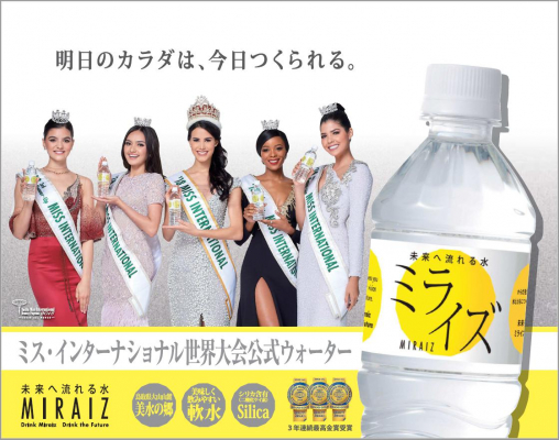 ミネラルウォーターブランド 『ミライズ』(製造・販売:永伸商事株式会社、本社:兵庫県尼崎市、代表:山本伸次)は、世界各国から“美の親善大使”が集まる「2019ミス・インターナショナル世界大会」に協賛いたします。『ミライズ』が大会公式飲料として、“美の親善大使“たちの水分補給をサポートいたします。