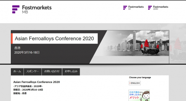 先端分野の市場情報を提供する株式会社グローバルインフォメーション(神奈川県川崎市、代表取締役社長:小野 悟)は、2020年3月16-18日 香港にて開催されますFastmarkets主催 国際会議 「Asian Ferroalloys Conference 2020-アジア合金鉄会議 2020年」の代理店として参加のお申込み受付を9月11日より開始致しました。