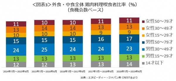子どもと男性50~79才が鶏肉料理喫食数増加に寄与