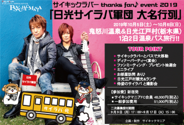 オフィシャルファンクラブ「サイキックマニア」が2年目に突入し、2回目となるバスツアーの開催が決定致しました!