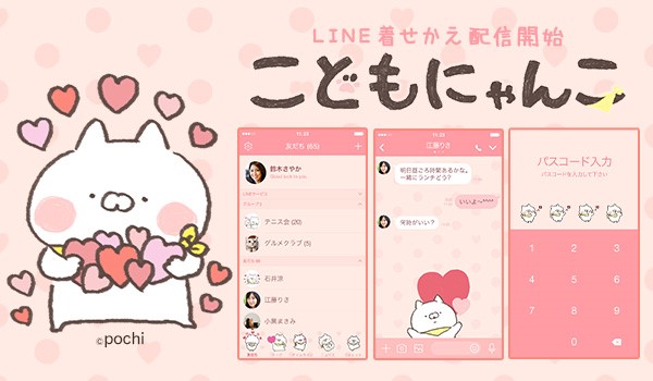 LINE着せかえ最新作は、「ハート」をテーマにシンプルなデザイン。ベビーピンクのカラーリングでまとめることで「こどもにゃんこ」のかわいらしさが引き立った着せかえとなっております!