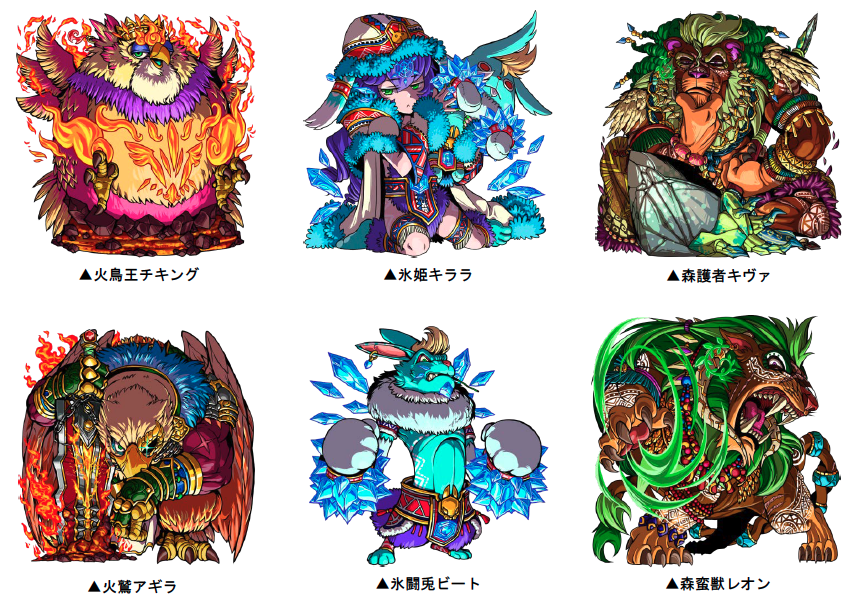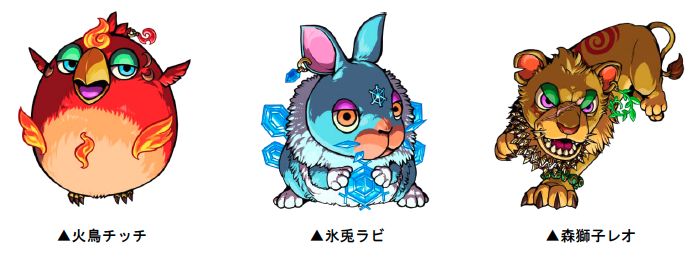 ボスとして登場する「火鳥王チキング」「火鷲アギラ」「氷闘兎ビート」「氷姫キララ」「森蛮獣レオン」「森護者キヴァ」を倒すと、宝箱から確率で「火鳥チッチ」「氷兎ラビ」「森獅子レオ」を入手することが可能です。