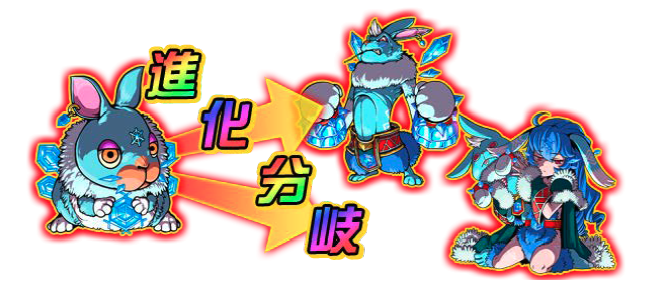 “超獣”カードは『進化分岐』要素を持っています。『進化分岐』は、進化ルートが途中から分岐し、好みの進化形態を選択する事ができます。それぞれが違った能力を持っているので、自分に合った進化形態を選びましょう!