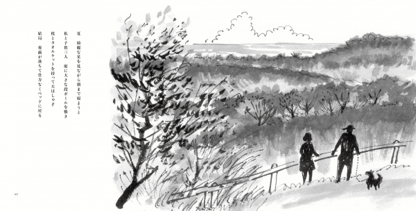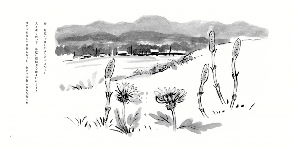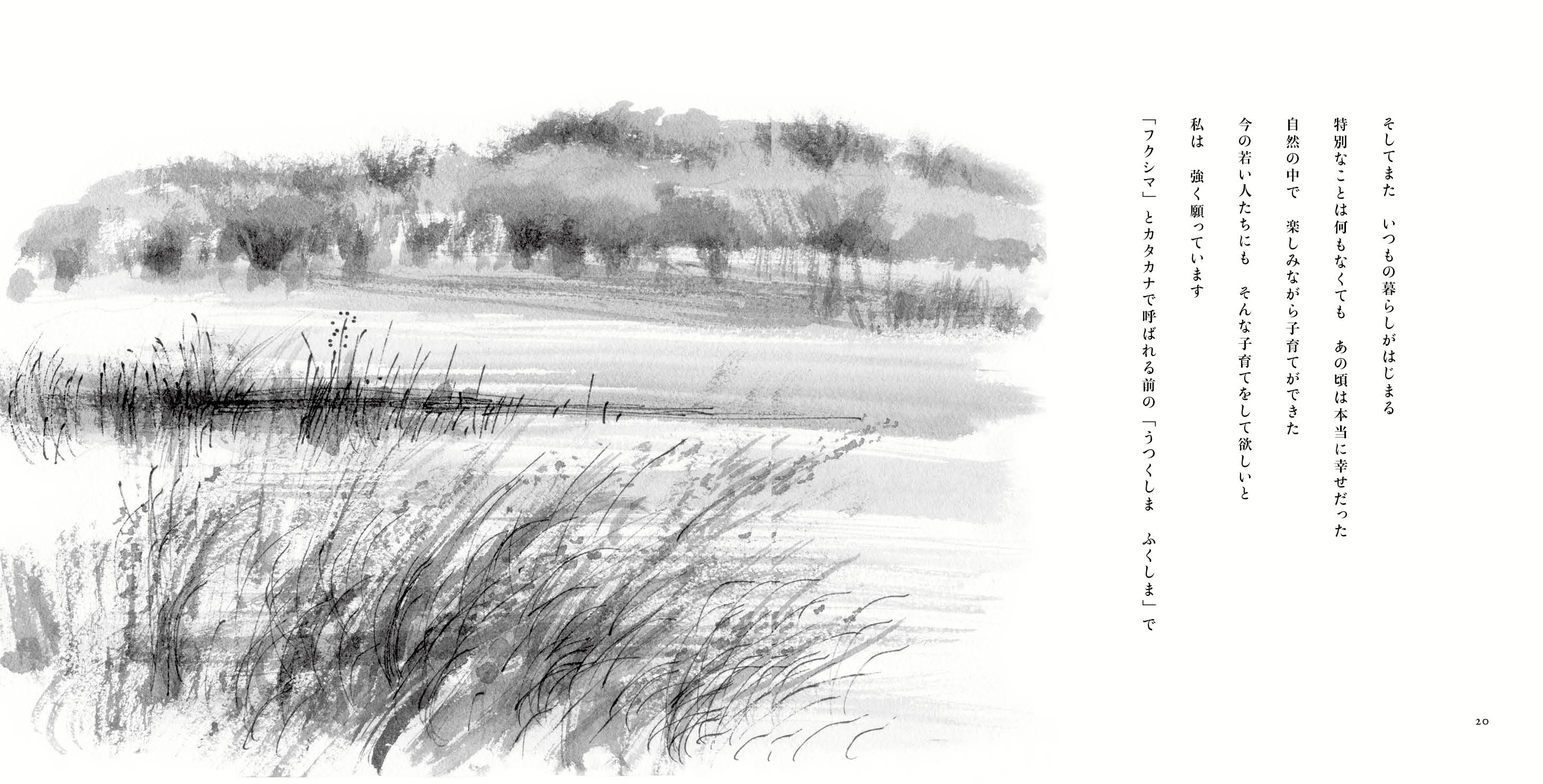 ……この痛切な悲しみと怒りの言葉と写真に、福島在住の水墨画家が、思い出をたどりながら美しい絵を添えた。