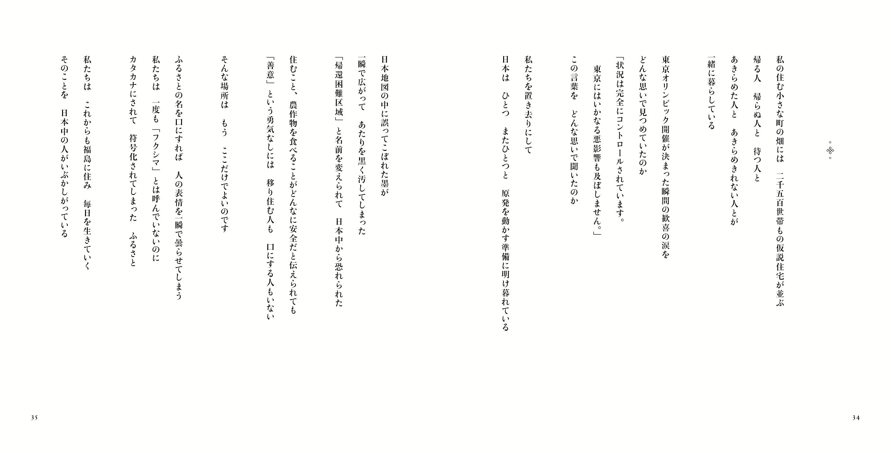 本書は失われた故郷への慟哭の書であるとともに、原発事故の悲惨を訴える告発の書であり、さらに未来への希望を託した祈りの書である。