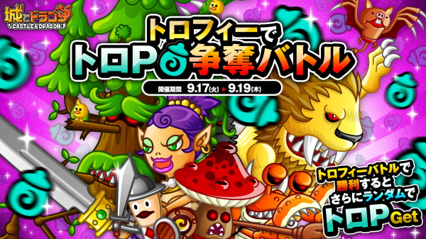 株式会社アソビズム(本社:東京都千代田区、代表取締役:大手智之)は、App Store・Google Play にて好評配信中の『城とドラゴン』で、「トロフィーでトロP争奪バトル」を2019年9月17日(火)より開催いたします。