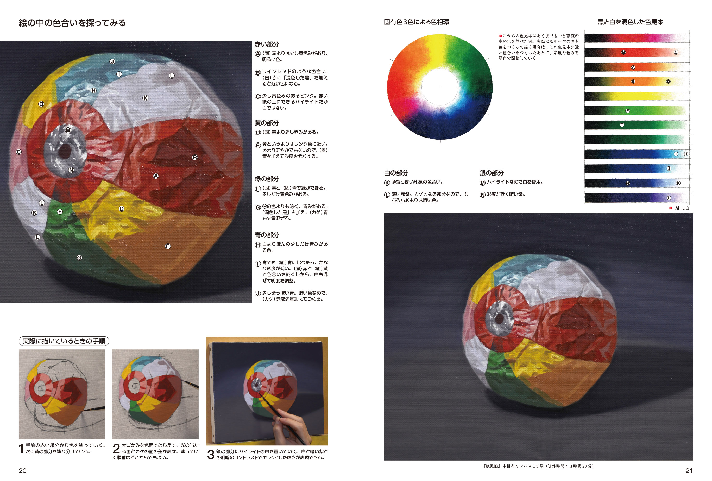 ●使用する絵具は3原色2タイプの6色プラス白色だけ!