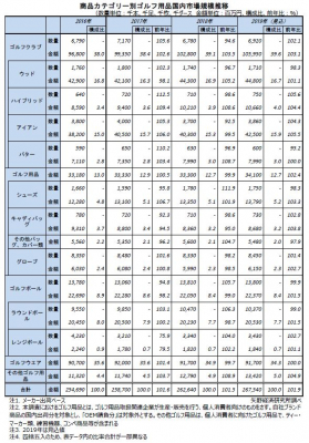 2019年のゴルフ用品国内市場規模(メーカー出荷金額ベース)は、前年比101.9%の2,675億4,000 万円を見込む。2017年、2018年に続いてのプラス成長とみるが、2019年上半期の市況を分析すると、一部の商品カテゴリーを除いては前年同期実績を大きく下回っている実情がある。こうした傾向が続くと想定すると、2019年は2017年、2018年の成長ほどにはならないものと考える。