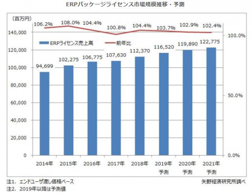 但し、景気の先行きには不透明感が強まっている。世界的な株安や円高が起きており、政府発表の各種指標にも陰りが見えることに加え、国内では2019年10月に消費税増税が予定され、国内消費の減退も懸念される。景気悪化は、ERP市場にもマイナスの影響を与えるため、経済動向には注意する必要がある。