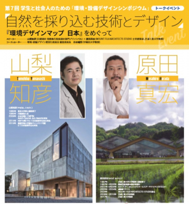 総合資格では、10月8日(火)建築会館ホールにて開催される「第7回 学生と社会人のための『環境・設備デザインシンポジウム』」に協賛し、トークイベント「自然を採り込む技術とデザイン『環境デザインマップ 日本』をめぐって」を開催いたします。