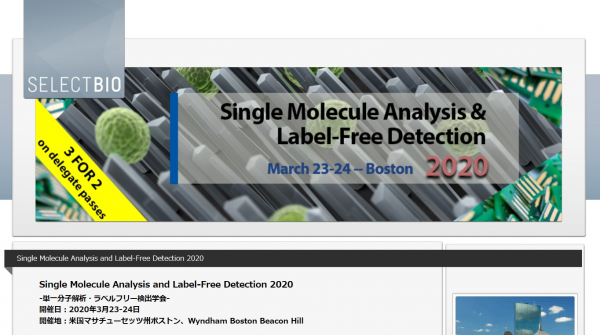 会議:「Single Molecule Analysis and Label-Free Detection 2020-単一分子解析・ラベルフリー検出学会」