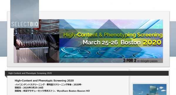 会議:「High-Content and Phenotypic Screening 2020-ハイコンテントスクリーニング・表現型スクリーニング学会 2020年」