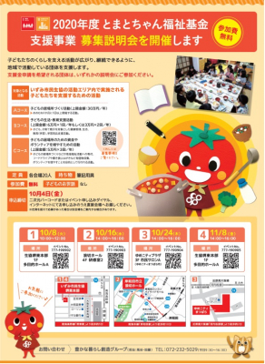 いずみ市民生協は、子どもを中心とした生活困窮の改善に寄与することを目的として、「とまとちゃん福祉基金」を創設しました。この基金は、組合員、お取引先、地域のみなさまのご協力と善意を受けて運営しています。この基金より、子どもたちを支援する地域での活動が広がり、継続できるように、活動の経費の一部を支援します。