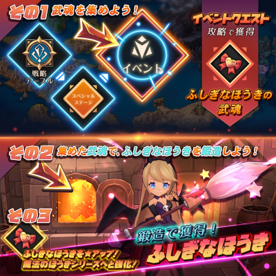 「ふしぎなほうきの武魂」を集めて両手魔法武器「ふしぎなほうき」を鍛造できます。"