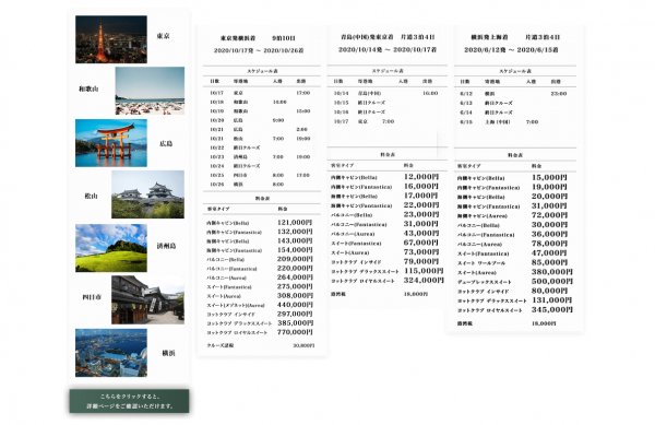 新発表コースの最安値は12,000円から!と、大変リーズナブルな設定になっております。ぜひ、秋の日本発着クルーズもあわせてご検討ください。