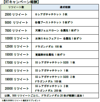 期間中、『ドラゴンポーカー』公式Twitterアカウント(@DragonPoker_aso)が投稿した、各キャンペーン対象ツイートの合計リツイート数に応じて、ゲーム内で使用できるアイテムをユーザー全員にプレゼントいたします。