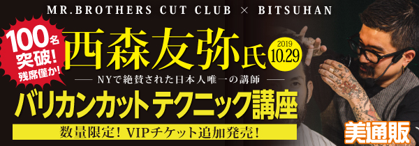 プロ向け美容材料の通信販売サイト「美通販」が、MR.BROTHERS CUT CLUB代表 西森友弥氏の「バリカンカットテクニック」講座を10月29日(火)に東京にて開催予定!100名突破!残席僅かです!
