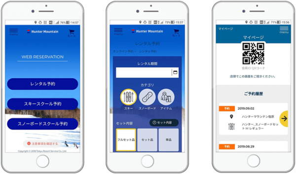 東急リゾートサービスが運営するスキー場では、昨シーズンよりリフトや売店、レストランなどで、電子マネーやスマホ決済サービスによる支払いが可能になるなど、場内のキャッシュレス化に取り組んで参りました。今回の予約サイトオープンにより、スマホ1台でレンタルやスクール予約・受付ができることで、さらなる利便性の向上を図ります。