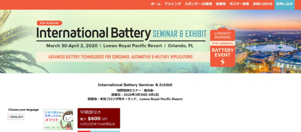 株式会社グローバルインフォメーションでは、皆様の利便性を図る為に、日本語、英語、韓国語、中国語で「International Battery Seminar & Exhibit-国際電池セミナー・展示会」の情報を提供するとともに、会議の参加のお申し込みを承っております。