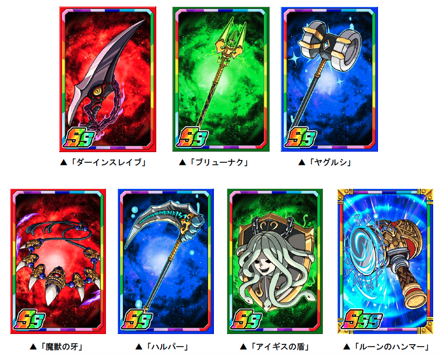 獲得したデュエルメダルは「デュエルメダル交換所」にて子分カード「ダーインスレイブ」「ブリューナク」「ヤグルシ」「魔獣の牙」「ハルパー」「アイギスの盾」、また、子分カード専用の進化素材として「ルーンのハンマー」などに交換することができます。