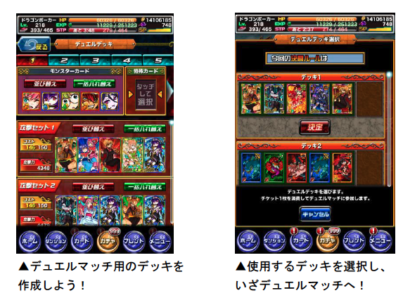 デュエルマッチでは、バトルで獲得できる「デュエルP」に応じてランキングが決まり、リーグ終了時に報酬が獲得できます。