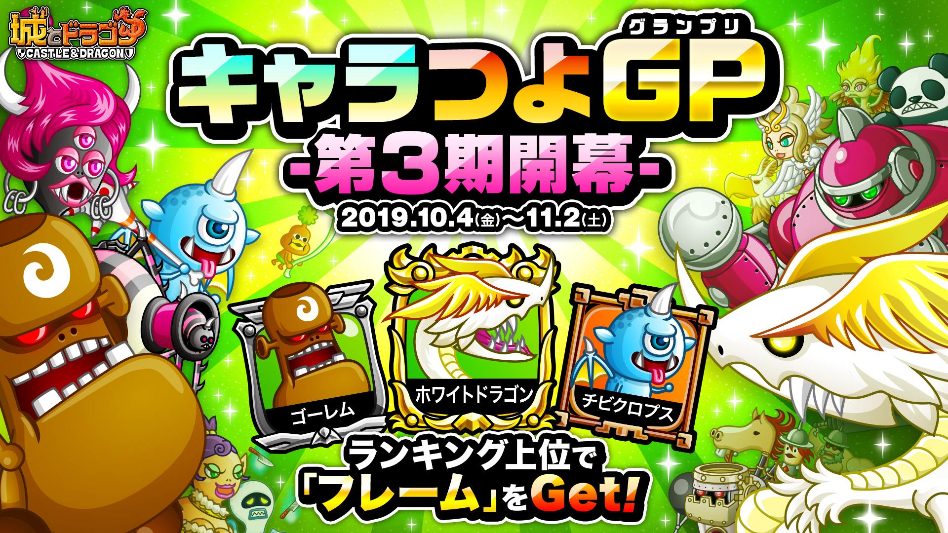 10月4日(金)より、対象キャラをリーダーにして戦い、強さを表すポイントとなる「キャラつよP」を競うイベント「キャラつよグランプリ」の第3期が開幕します。