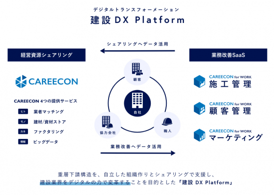 「CAREECON 建設DX Platform」構想は、様々な業務や業界の枠を越え、日本の建設業がもっとも魅力的で、輝ける業界になることを目指していくための構想です。