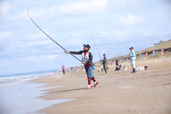 GAMAKATSU PTE LTD と株式会社 がまかつが共催する【第40回G杯争奪全日本がま投(キス)選手権】が 、10月6日(日)、7日(月)に、石川県かほく市の高松海岸で開催された。各地の予選を勝ち抜いた選手にシード選手を加えた 30人がG杯の栄冠を目指し釣技を競った。