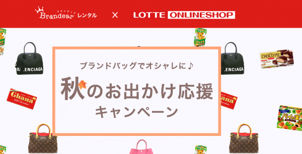 キャンペーン企画では、ブランディアレンタルをご利用いただくと、LOTTE ONLINE SHOPで使えるクーポンを差し上げます。秋は紅葉も始まり、旅行に最適な季節です。レンタルしたバッグと、旅のお供になるお菓子と一緒に素敵な旅行の思い出のお手伝いができればと考えています。