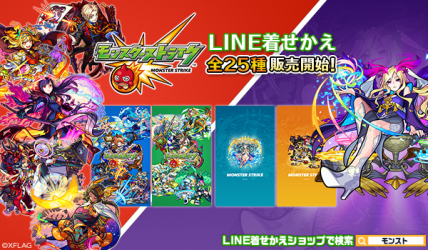 株式会社インクルーズ(東京都渋谷区、代表取締役社長 山崎 健司)は、LINE株式会社(東京都新宿区、代表取締役社長 出澤 剛)が運営するコミュニケーションアプリ「LINE」内の着せかえショップにて、株式会社ミクシィのXFLAGが提供するスマートフォンアプリ「モンスターストライク」25種LINE着せかえを2019年10月10日(木)に一斉配信致しました。