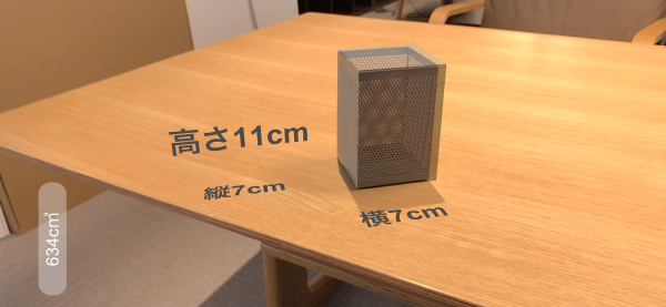 今までの計測モードでは点と点をつなぎ、距離や面積、角度の計測が可能でしたが、今回からは空間に半透明の立方体をARで配置し、縦横の長さを変えながら、辺の長さや体積を計測することが可能になりました。この機能追加により従来の「HakaruAR」では、測りにくかったものを簡単に測ることが可能です。