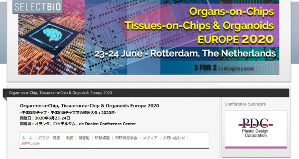 会議:「Organ-on-a-Chip, Tissue-on-a-Chip & Organoids Europe 2020-生体機能チップ・生体組織チップ学会欧州大会 2020年」