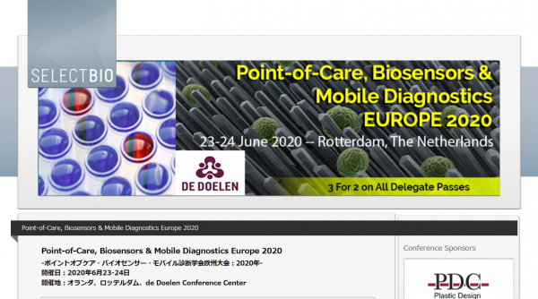 会議:「Point-of-Care, Biosensors & Mobile Diagnostics Europe 2020-ポイントオブケア・バイオセンサー・モバイル診断学会欧州大会:2020年」