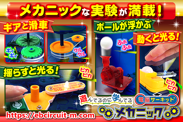 電子回路を通じて「機械工学」や「力学」の基礎的なしくみが学べる実験がいっぱい!