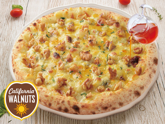 チーズ好きなら誰でも一度は試してみたい、複数のチーズが醸し出す塩味と甘さの組み合わせに、マイルドな風味のカリフォルニア産くるみがアクセントとして満喫できる1品に仕上がりました。さらに、1枚のピザに約30gのくるみを使用することで、成人1日分の目安(1.6~2.4g)のオメガ3脂肪酸が摂取できます※。オメガ3脂肪酸は健康を守る必須脂肪酸として注目されていますが、体内で生成できないため食品からとる必要があります。