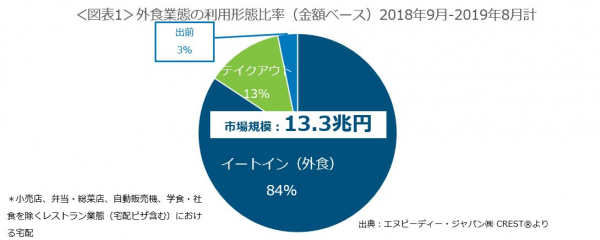 外食業態の市場規模は13.3兆円、出前比率は3%
