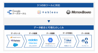 ダッシュボードツール(BIツール)は、Google Data Portal、Tableau Desktop および MotionBoard Cloud の3つのツールに対応。お客様のご要望に合わせて選択できます。