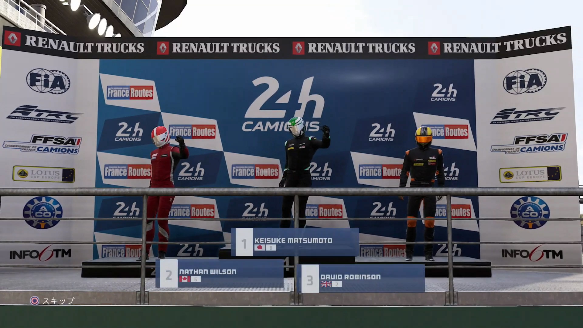 FIA EUROPEAN TRUCK RACING CHAMPIONSHIP (C)2019 Developed by N-Racing. All rights reserved. An official product of the FIA European Truck Racing Championship, under the license of ETRA Promotion GmbH and the Fédération Internationale de l’Automobile. The manufacturers, trucks, names, brands and associated imagery featured in this game are trademarks and/or copyrighted materials of their respective owners. “ETRC” and the ETRC/FIA logo are registered trademarks of the Fédération Internationale de l’Automobile. All rights reserved. The trucks in the game may differ from the shape, colour and performance of the actual trucks. Published and distributed by 3goo K.K.