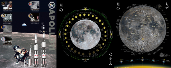 ★パッケージには「月の地図(おもて面)」、「月の名前(満ち欠け)と光条地図」、「アポロ月面着陸写真年表」が付録で付いている。