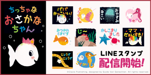 LINE着せかえに引き続き、ベストセラー絵本「ちっちゃなおさかなちゃん」がLINEスタンプとなって登場!おさかなちゃんの雰囲気に合わせ、カラフルでポップなデザイン、丁寧で使いやすいスタンプとなっております。親子やお母さん同士、もちろんお友だち同士で使用してもお楽しみいただけます。「ちっちゃなおさかなちゃん」スタンプでLINEのトークをおさかなちゃんとカラフルに彩ってみてはいかがでしょうか。