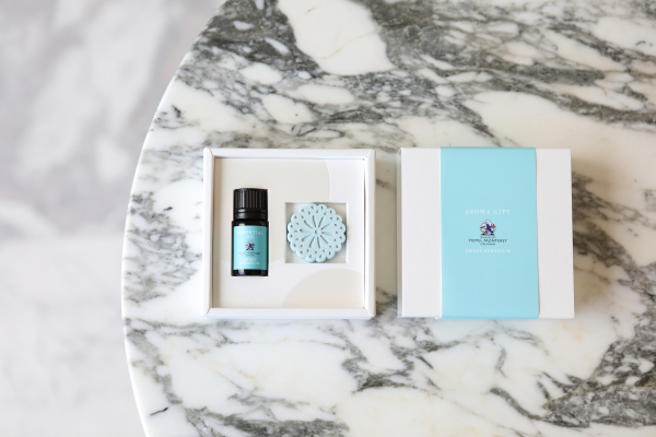 ホテルモントレ沖縄 スパ&リゾートからは、エッセンシャルオイルとアロマストーンがセットになったギフトボックスをリリース。エッセンシャルオイルをアロマストーンに数滴落とすと、ホテル館内で漂う明るい香りがふわりと広がります。
