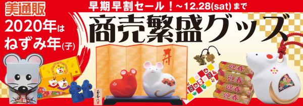 プロ向け美容材料の通信販売サイト「美通販」が、年末年始のご挨拶に最適な「2020ねずみ年・商売繁盛グッズ」キャンペーンを開催いたします。サロン様からお客様へ、感謝の気持ちを伝えるのに最適な干支グッズ・迎春グッズを多数ご用意し、業界最安値を目指した美通販特別価格でご提供いたします。