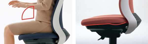 背筋をまっすぐ保ち続けるのは難しいことですが、「ベネス」は上半身と太ももの角度を90度より大きく開く座面の傾きや、背座の曲面がしっかりと腰を支え、座るだけで正しい姿勢を自然にキープすることができます。