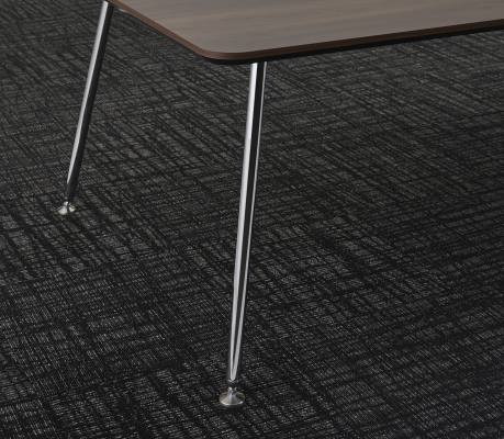 独自構造の放射状に広がる斜め脚のデザインで、スリムな脚でも横揺れを抑えます。また、クロムメッキ仕上げの脚には床が写り込み、天板の浮遊感を演出する効果もあります。