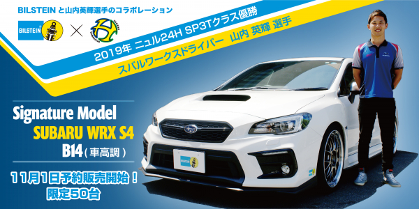 2019年 ニュル24H SP3Tクラス優勝・スバルワークスドライバーの山内英輝選手とビルシュタインのコラボレーション製品 SUBARU WRX S4用 B14 ネジ式車高調整サスペンションキットの予約販売を11月1日より開始いたします。