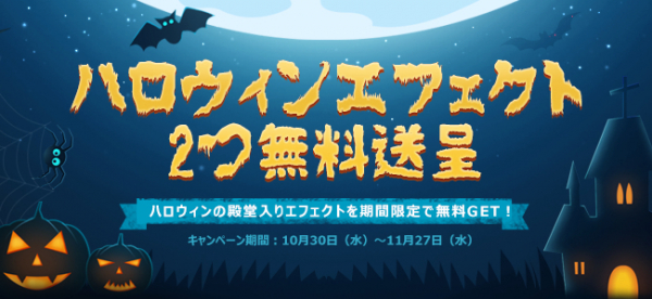 ※11月27日以降は新規無料ダウンロード、およびキャンペーン期間内でダウンロードしたエフェクトの無料使用はできません。必ずキャンペーン期間内にご使用ください。