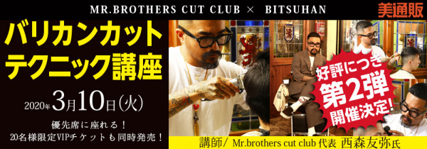 プロ向け美容材料の通信販売サイト「美通販」が、好評につき第2弾となるMR.BROTHERS CUT CLUB代表 西森友弥氏の「バリカンカットテクニック」講座の開催を決定しました。