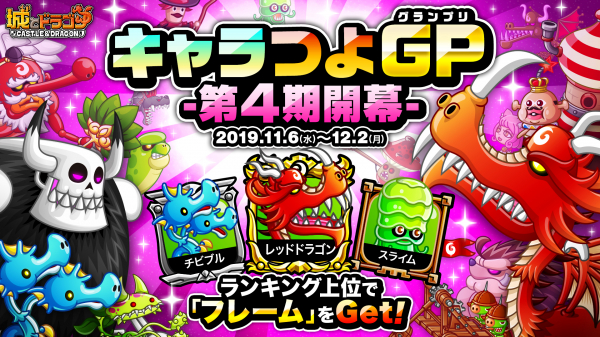 株式会社アソビズム(本社:東京都千代田区、代表取締役:大手智之)は、App Store・Google Playにて好評配信中の『城とドラゴン』で、2019年11月6日(水)より「キャラつよグランプリ」を開催中です。