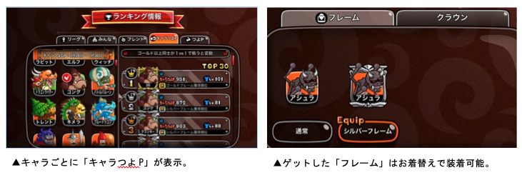 「キャラつよグランプリ」とは、対象キャラをリーダーにして戦い、強さを表すポイントとなる「キャラつよP」を競うイベントです。対象となるバトルは開催期間中の「ひとりでリーグ」となり、イベント終了時のランキングに応じて、上位者にはキャラアイコンを装飾できる「フレーム」が贈られます。